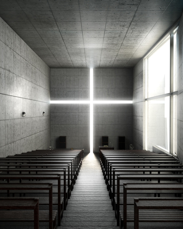 This is the Church of Light in Osaka, built after the famous designs of Japanese architect Tadao Ando.